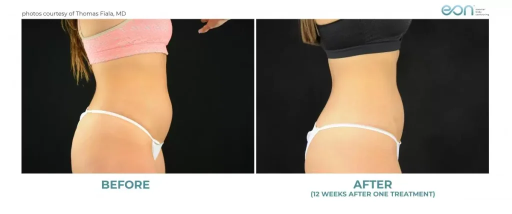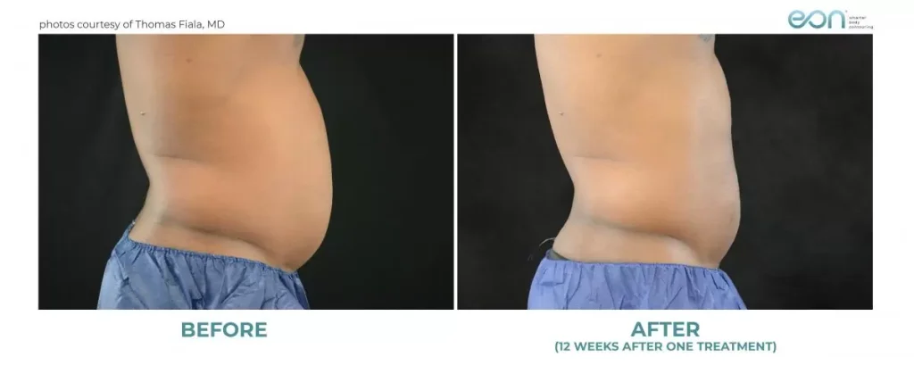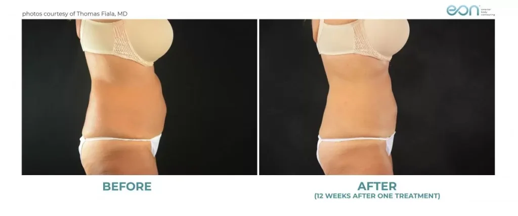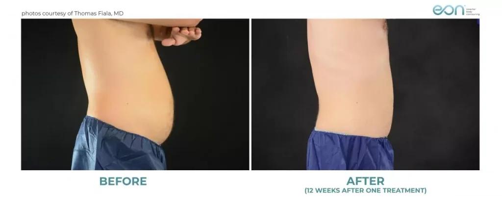 - Permanent fat reduction is achieved 12 weeks after treatment. Average patient experiences 6.3mm of permanent fat loss.